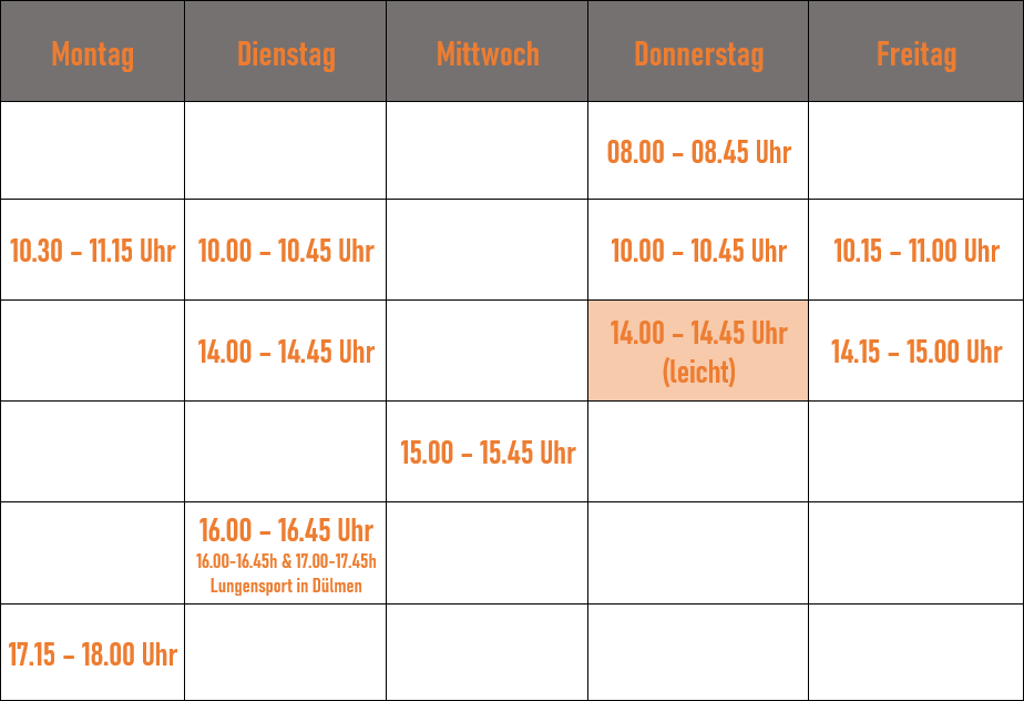 Zusätzlich zum Angebot in Coesfeld bieten wir am Standort Dülmen Lungensport an. Immer dienstags von 16.00-16.45 & 17.00 – 17.15 Uhr!